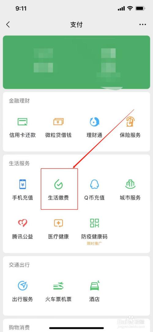 打开支付页面,选择生活缴费