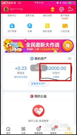 任 性 付 是苏 宁 旗 下支持分期付款的产品,在 苏 宁 易 购 app里开通。