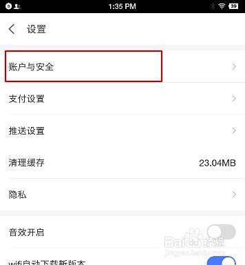 在设置列表中,我们选择最上方的“账户与安全”的 选项进入。