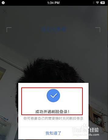 将自己的面对摄像头识别,系统核实成功后,则可以开通人脸识别登录。