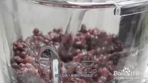 红豆清洗干净煮熟,加入清水,煮熟后晾凉,把红豆倒入破壁机中打成泥。