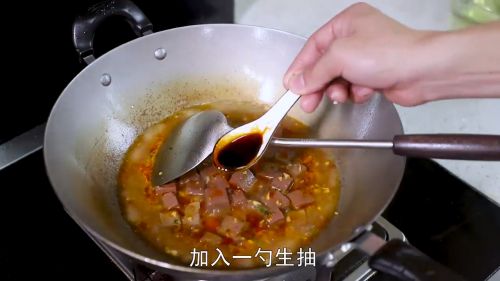5加入一勺生抽、少许老抽。