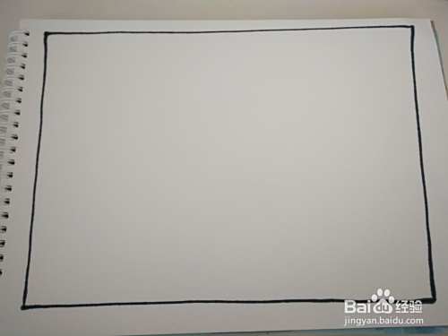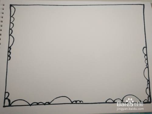 用勾线笔绘制手抄报的矩形边框,边框内侧绘制装饰用半圆弧线。