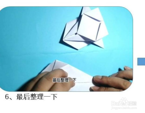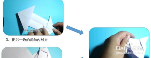 把另一边的角向内对折,把另一边插进一边中,接着再拿另一张纸折成三角形插进变身器中。