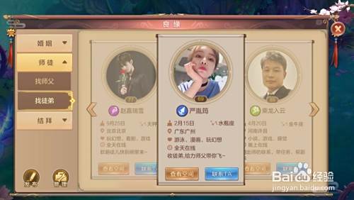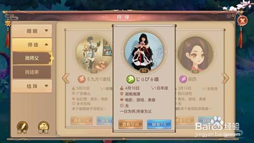 有人看到了想拜师的话就会联系你,或者我们可以直接在想“找师父”的信息那里寻找自己中意的徒弟,然后联系他。