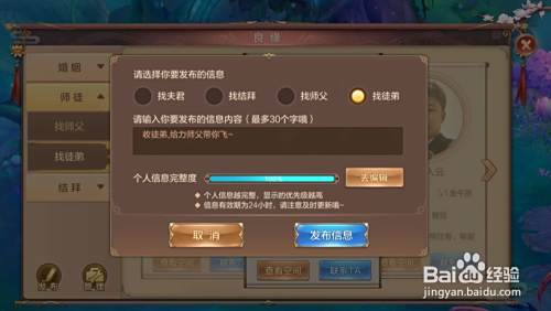 点击发布后会弹出一个个人信息的输入框,我们选择“找徒弟”,然后将个人信息填写完整,点击发布,这样自己找徒弟的信息就会被其他人看到。