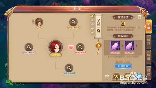 进入自己的家谱后,我们可以看到右侧有3个标签,分别是家谱、结拜、师徒,我们点击“师徒”。