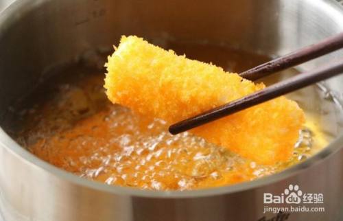 将食用油倒入锅中,加热5分钟油,放入鲜奶油,用小火慢慢油炸,直到皮变硬为止,炸至金黄。