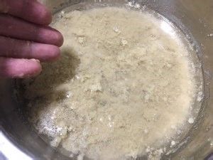 然后捞,揉捏挤出水分,面筋就成团了,倒出多余的水分,包上保鲜膜醒发一个小时,没空做的亲可以放冰箱醒发几个小时,过夜都是没有问题的。⚠️醒发不是发酵!