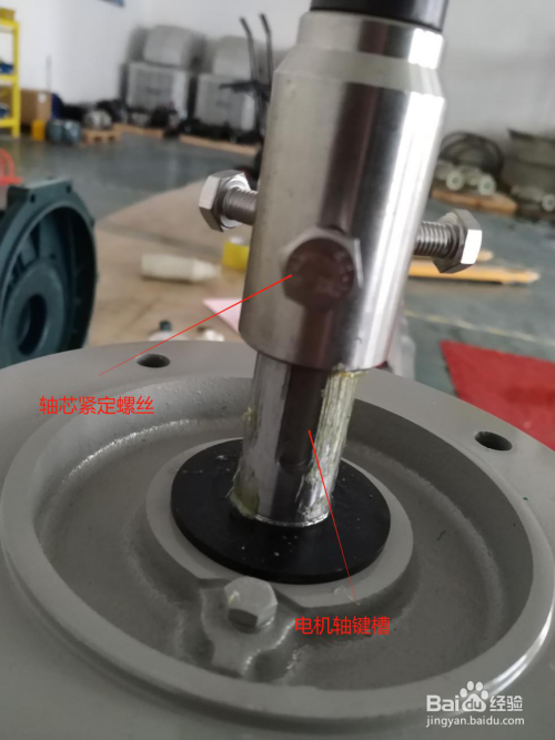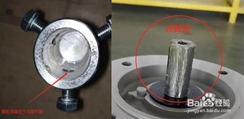 将轴心禁锢螺丝调整到轴心螺孔内部平面一下,防止螺丝突出卡住轴心。电机轴心涂抹黄油,防止不易安装。