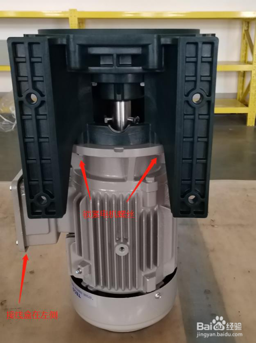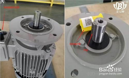 电机包装拆除,将电机法兰盘(电机轴)向上,放置在工作台上。 电机接线盒朝向左侧,取下电机轴自带的平键、和电机轴芯护套,核对电机的型号、功率,同时检查电机是否有破损和电机装配错误。