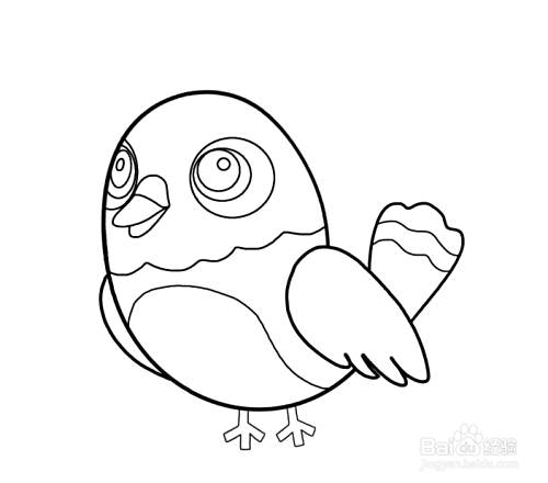 第五步,再接着,如图,接着画出鸽子脚部的轮廓,接着画出鸽子尾巴的轮廓和线条图案。