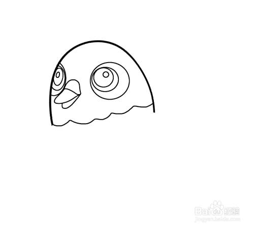 第二步,接着,如图,接着画出鸽子眼睛的轮廓。