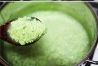 果汁豆浆混合。将豆浆和菠菜汁混合投放在盆里,并在盆里倒入油和白醋,一滴滴加入适量卤水。