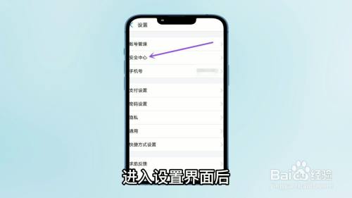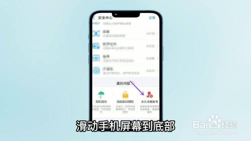 进入设置界面后,点击安全中心进入,进入安全中心后,向上滑动手机屏幕,滑动手机屏幕到底部,就可以看到永久注销账号,点击进入。