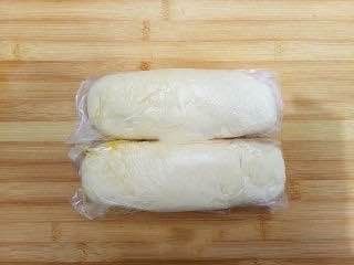 揉好的面团用保鲜膜包好,开始发酵。 (室温需要两三个小时,泽瑞妈是放在冰箱中发酵的,晚上揉好面团,早晨炸制,冰箱发酵一夜)。