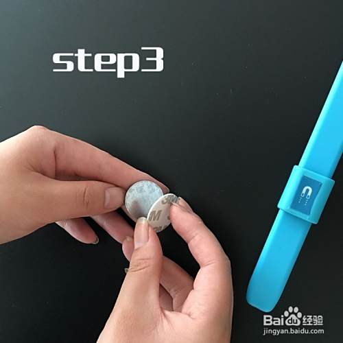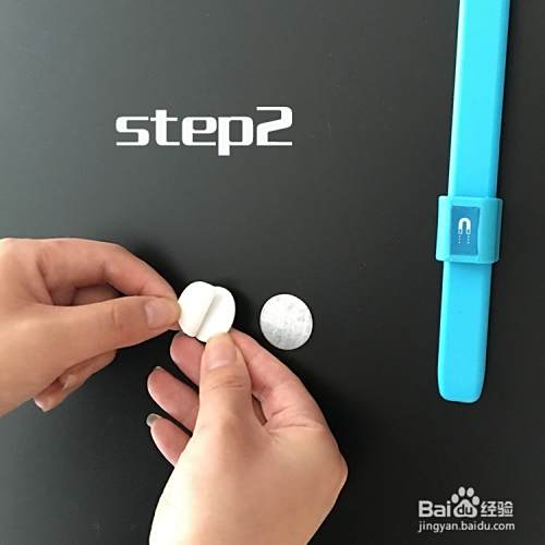 铁片有3M胶的一面粘到你所需要的地方,墙体、柜子、书本等等都可以