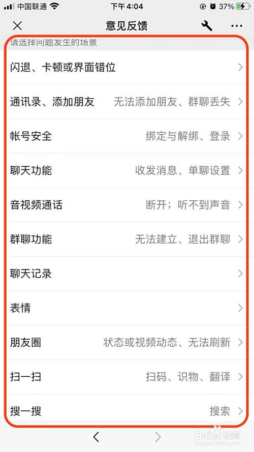 最后选择在使用遇到的【问题类型】在进行【反馈信息】就可以了,如图所示。