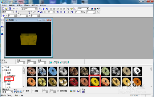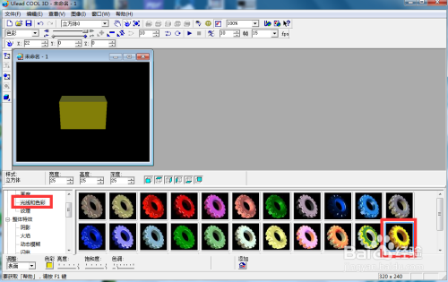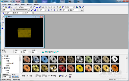 在ulead cool 3d中,我们可以给创建的几何图形添加各种特效,下面来介绍一下如何在ulead cool 3d中给长方体添加黄色纹理特效。