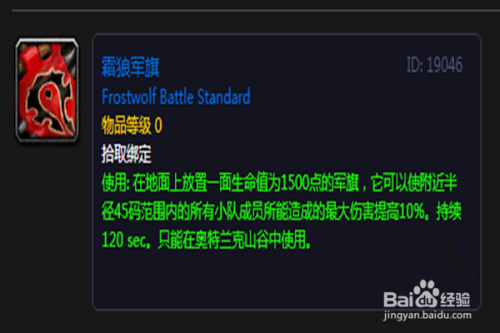 如果是部落玩家,到主基地东南边的蛮爪洞穴中去找到霜狼军旗(坐标位置如图所示)。