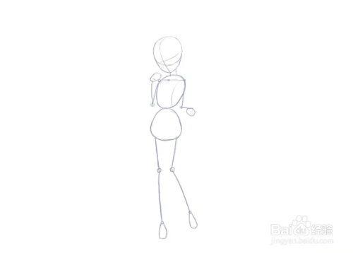 素描出小女孩的线框图草图。但是画一个比较大的头部来代表儿童的比例。