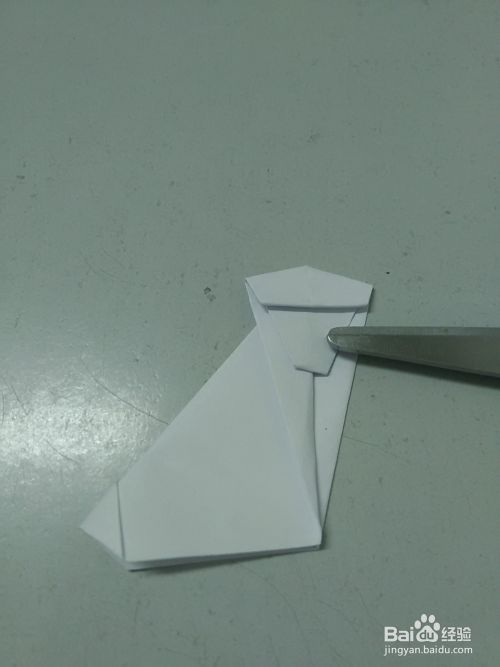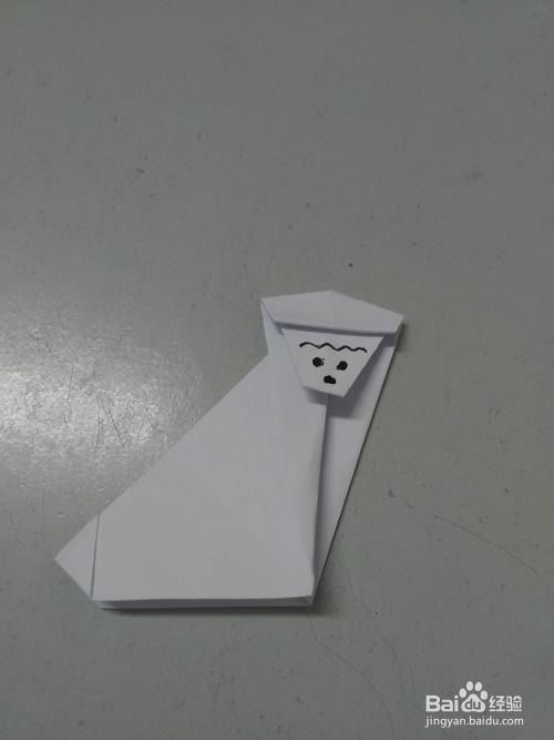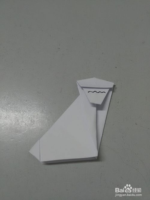 将上层下面的角向后面折进去一个小角,折成猴子的下巴。