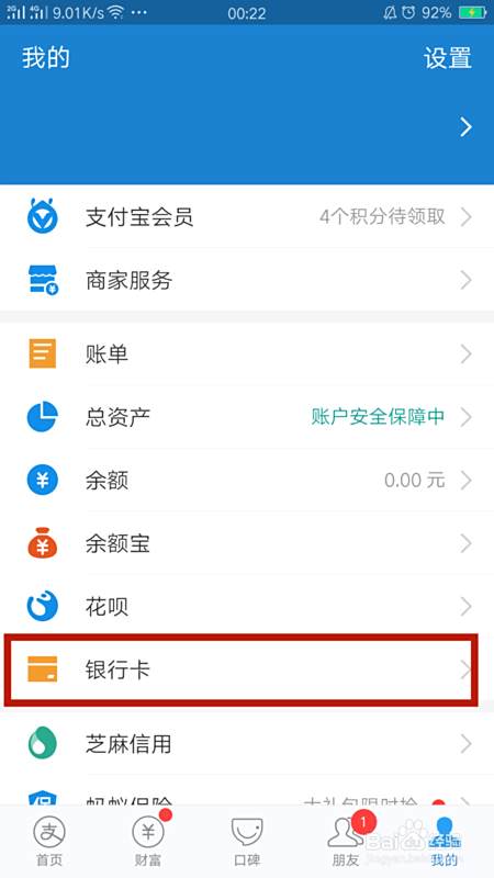 进入主界面中,点击右下角的我选择银行卡