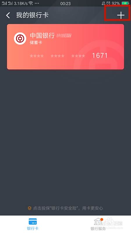 进入我的银行卡页面点击右上角的+号