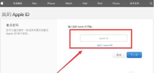 在弹出的页面输入”Apple ID“账号,点击”下一步“。