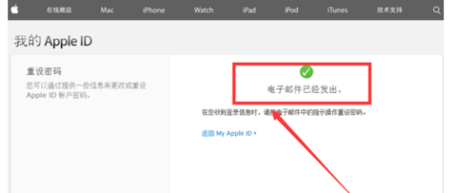 这时系统就会提示,密码重置的电子邮件已经发出。