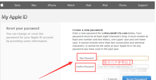 在弹出的窗口中输入”新密码“,再输入”确认密码“,点击击”Reset password“,就可以设置成功了。