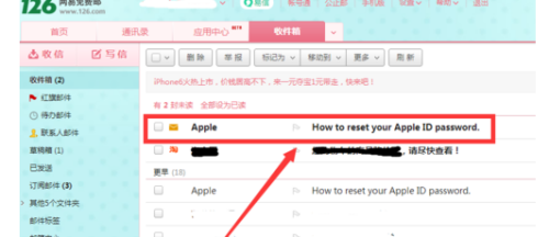 打开账号邮箱,在收件箱里中找到密码重置的邮件,并点击邮件。