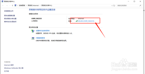 进入网络和共享中心设置界面,选择正在使用的无线网络