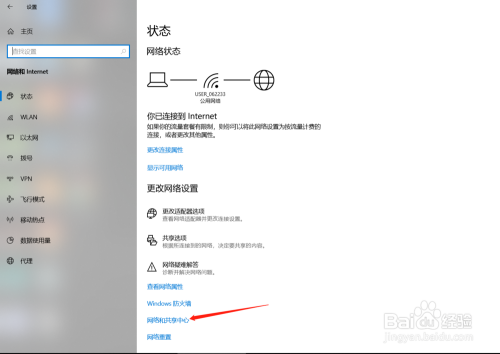 弹出设置界面,点击右变配置项【网络和共享中心】