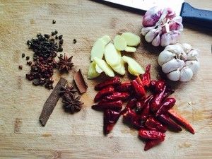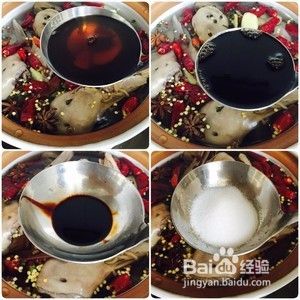 把淖过水再次洗干净的鸭头放入砂锅,倒入凉水,水量刚好淹没鸭头,放入八角、桂皮、干辣椒、姜片、花椒,然后依次放入黄酒(或料酒)、生抽、老抽、盐。大火烧开,关小火炖。