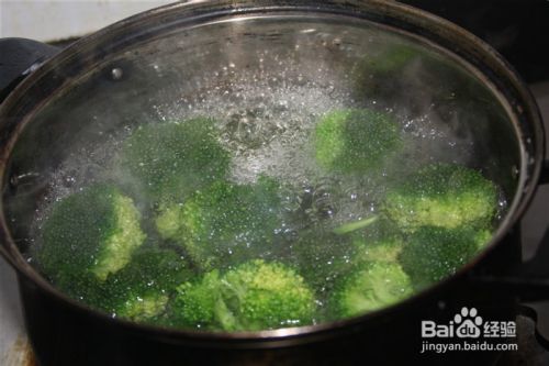 西兰花洗净切小朵,放入开水里煮熟。