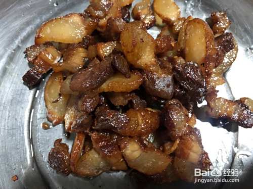 加入鲜鸡汁和少许盐调味!翻炒片刻,关火,腊肉放入翻炒均匀即可!