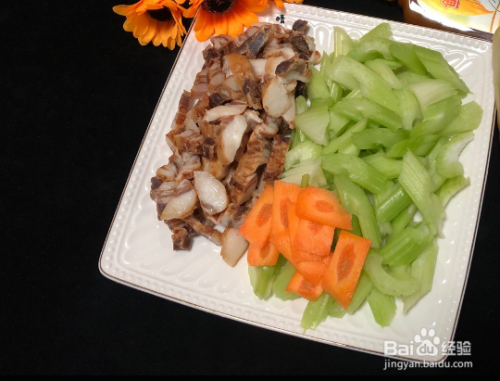腊肉去皮切片,西芹切块、红萝卜切片备用!