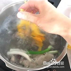 放入各种调料(花椒葱姜草果八角橙子皮),就OK了