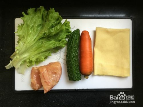 食材准备:生菜、黄瓜、胡萝卜、豆皮、鸡胸肉