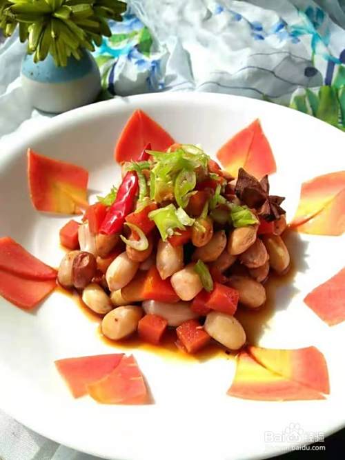 “这个季节是新鲜花生上市的时候,花生是我们老百姓吃的起人参果。长寿果。很多人吃花生的时候都喜欢将花生仁外面的红皮剥掉,其实这样做就辜负了花生皮的作用了。为什么这么说呢?因为花生皮具有凝血止血的功效,这一功效甚至比花生仁高出近五十倍。另外,由于花生皮还具有抗纤维蛋白溶解的功能,它能够调整凝血因子缺陷等作用,对神经炎、脚气病、视觉不清等疾病都有积极的防治作用。总之花生好处多多。在中秋家宴上来上一份营养美味的开胃菜下酒菜大家都喜欢。”