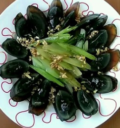 “天气热,没有食欲,来盘皮蛋拌芹菜。清口开胃,保你喜欢。”