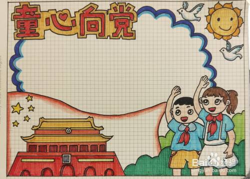 “没有共产党就没有新中国……”每当这首歌曲在我耳边回响时,我心中充满了对共产党的敬意。今年是建党九十九周年,我们在党的领导下人民幸福,国泰民安,今天我们一起来画一幅关于童心向党的手抄报,准备好了吗?开始吧。