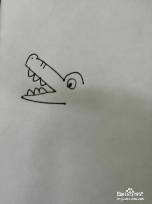 第三步,然后画出小鳄鱼的上面和下面牙齿。