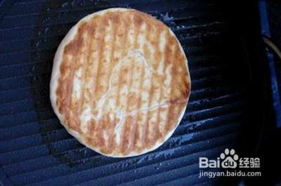 5.做好的酪饼,上锅烙的时候最好刷少许的油,这样能够防止水分蒸发,烙出来的饼比较软。另外,使用中等大的火,烙饼的时候不要过于勤快的翻面。等一面熟了再翻一面即可。
