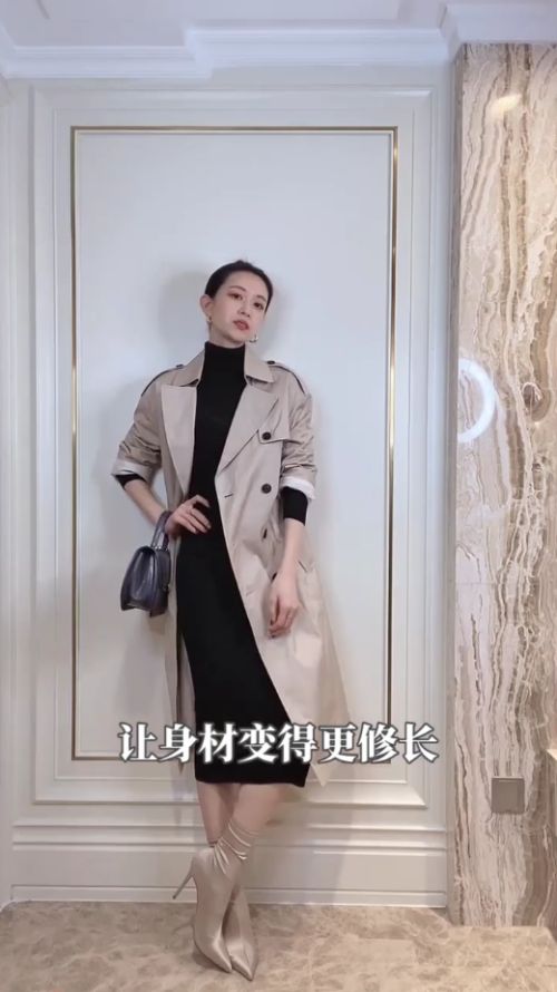 3高领或半高领紧身毛衣。搭配中长款的裙装与风衣。