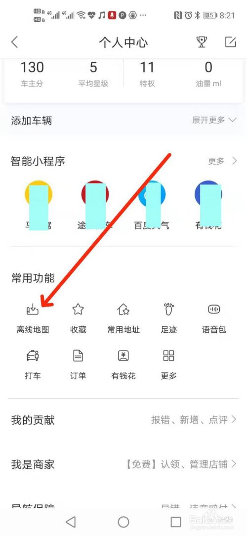 进入“个人中心”页面后,移动页面找到“常用功能”项,然后选择“离线地图”。
