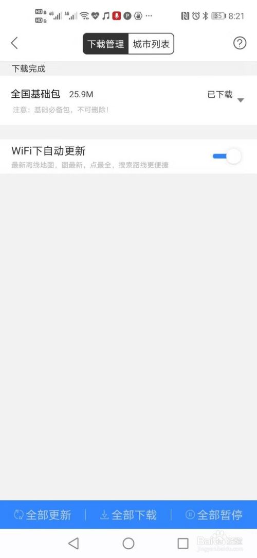 目的城市的离线地图下载完成后,城市名后面显示“已下载”字样。退出即可。