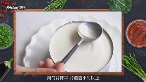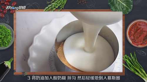 5将奶油加入酸奶糊,拌匀,轻缓的倒入慕斯圈。