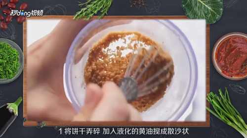 1将饼干弄碎,加入液化的黄油搅成散沙状。